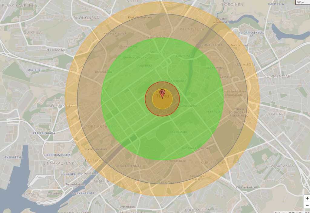 This show was created by mistake (that is, if you believe in mistakes). As I was looking for an apartment in the city center and an online tool to show distances in radius, I found the Nukemap site. I chose the “Little Boy” bomb, set the cursor on the central square in Turku, and pressed Detonate. What I saw made me forget about searching for apartment, and instead sent me on a journey through the vast documentation of Hirshima’s nuclear bombing. To my astonishment I found so many equivalents between the HIroshima of 1945 and Turku of today: population size, topography and more. Soon after, I started to find peculiar “portals” between the cities in the 2 points of history, such as the bronze Buddha statue that partially melted in a temple in HIroshima, and a bronze statue of similar size, located in the same distance from the now-to-be ground zero in Turku. I was guided into this guided tour by facts who unfolded in front of me one by one.